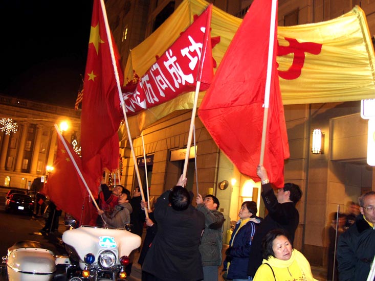 除了控制示威请愿的组织,监视华人,中领馆还通过给予留学生好处,招募他们参加摇旗呐喊的欢迎机动队。陈用林说,欢迎机动队表面上是欢迎,实际上是出现示威的时候,这些人就摇旗呐喊,或阻挡示威者视线,假装欢迎。机动队主要是学生,中共给他们一些好处,给钱、管饭、给演出票等等。