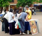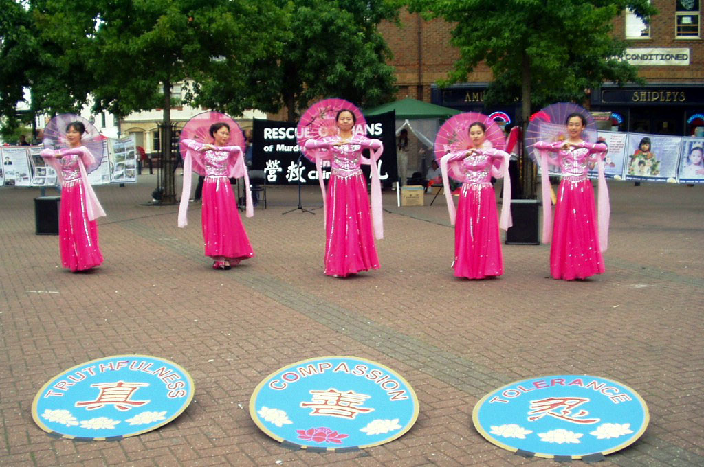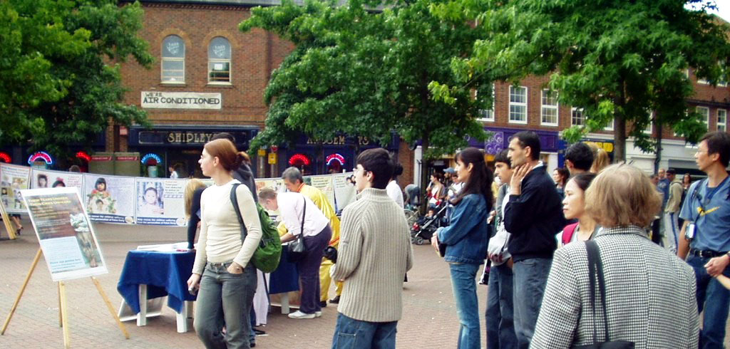 广场上过往的行人中除了英国人,还有许多是到牛津旅游的世界各地游客。人们在营救义演优美的音乐和法轮功学员祥和纯正之场的吸引下,或放慢脚步,或驻足观看。当人们得知义演的主题是为营救法轮功学员的孤儿时,许多人向学员索要真象资料了解更多信息,也有不少人表示已经知道法轮功在中国遭迫害的事,并径直走到征签桌旁签名支持法轮功。