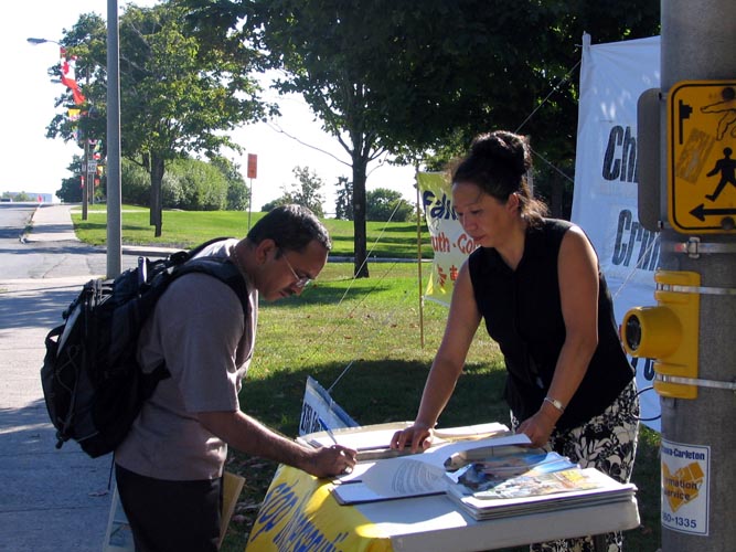 ![]() 纯朴的加拿大人当得知迫害真相后,支持法轮功学员的呼吁,希望加拿大政府敦促中共停止对法轮功学员的迫害。 |