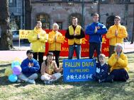 每年夏天,她又会利用假期,约我们与她一起,开着她的车,巡回在芬兰的一些大中城市的露天市场和步行街洪法,讲真相。年复一年,有些城市的人们对法轮功已不陌生,途经我们洪法点时,人们会友好的说,“法轮大法好!”“哦,法轮功,我认识你们。” 有几位新学员就是在我们洪法中走进了大法修炼中。