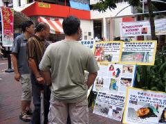 在新加坡闹市区坚持讲真象的法轮功学员们(图)