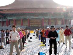 中正纪念堂因为其特殊的历史背景,所以成了许多中国人来台必访之地。法轮功学员在这儿炼功洪法讲真相已有一段时间。这群祥和的,或老或少、或男或女,来自社会各阶层的炼功人,很自然的成为中国大陆游客的焦点。他们就像摊在阳光下的法轮功真相,散发出的真诚善良特质,使中共邪党对法轮功的所有造假宣传瞬间瓦解。刚走了一团大陆游客,又进来了一团,团团都是有缘人,法轮功学员紧紧把握机会讲真相。
