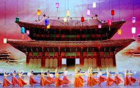晚会的第一个节目“神州传灯”热闹又精彩:金龙飞舞,醒狮贺岁,人们载歌载舞感谢上苍,欢度佳节,天神陡降,向人间传灯。舞者起伏进退,长袖翩翩,罗带流转;音乐庄严雍容不失喜庆。灯入人间,笛在天宫,随后的群舞伴着天宫中仙女们奏笛起舞,美好仙境尽现眼前。真可谓千姿百态,美妙绝伦。