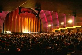 曾接待过三亿观众的纽约无线电城是世界最大的室内剧场,被誉为“国家演出地”。本次晚会利用无线电城的声光电技术,用两万五千盏灯和四色舞台灯辅以电脑合成的天幕,从烟雨楼台、江南水乡到金戈铁马、名山大川;从碧竹红花、寒暑雨雪到日月星辰、九霄祥云;从佛国美妙、众神慈悲到大法洪传、英雄辈出。在三层活动舞台上营造出意境典雅的天上盛景和人世变幻。