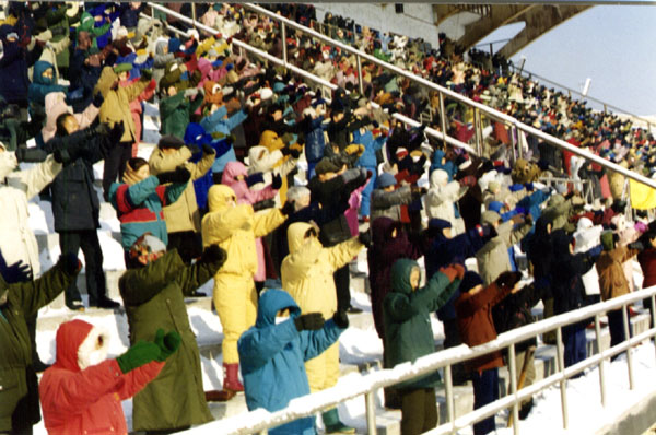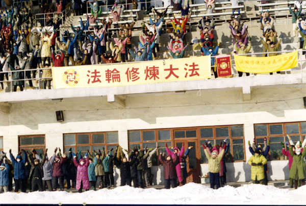 大法弟子在鞍山市体育场集体洪法