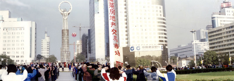大法弟子在鞍山市原市政府广场集体洪法