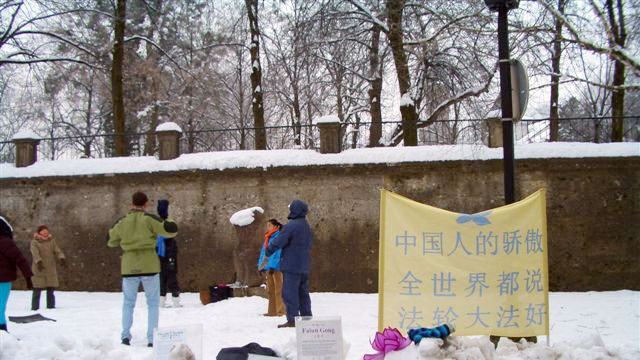 位于萨尔茨堡著名的米拉贝尔花园和国际会议中心之间的小公园里,有一个特殊的修炼团体。他们一到周末,或天气晴朗的日子,都会在这里炼功。祥和的炼功音乐、优美的功法,吸引着来自世界四面八方的游客驻足观看,拿走各种语言的传单。当然,也包括来自中国的大量旅游团体。这些人在这里炼功,已经将近6 年多了。他们就是法轮大法修炼者。