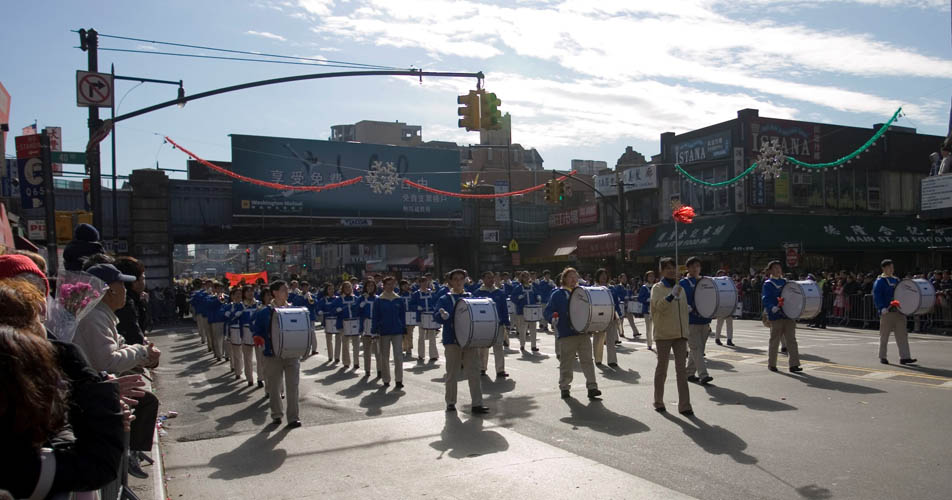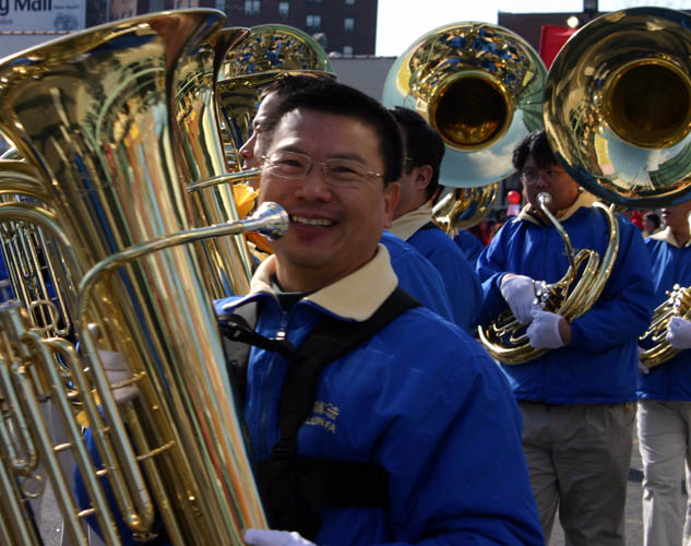 ![]() 阵容强大的法轮功军乐队在纽约闪亮登场 |