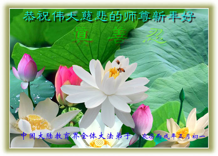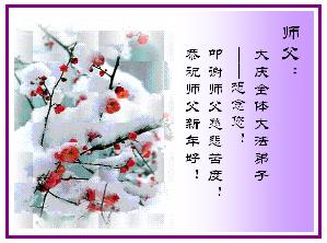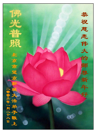 值此新春佳节之际,我们全体北京清河地区和北太平庄地区的大法弟子向慈悲、伟大的师尊致以节日的祝贺,祝师父新年快乐!