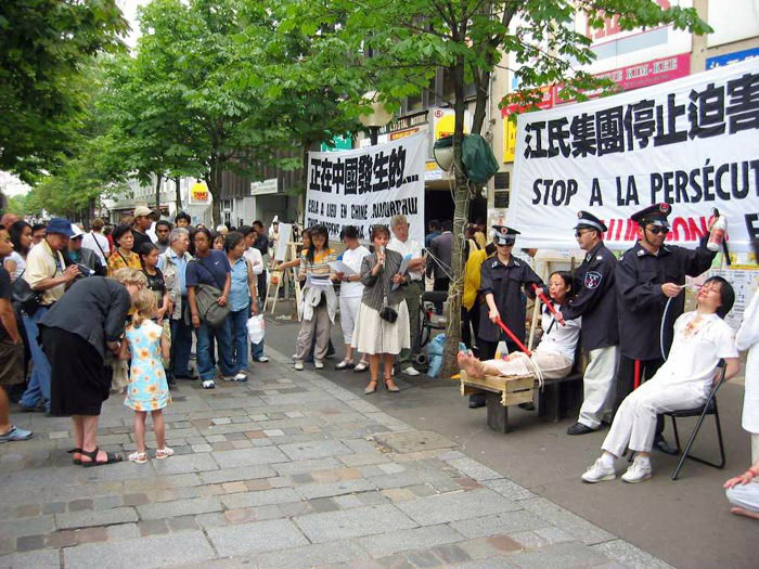 ![]() 在马赛老港揭露迫害真相 | ![]() 在巴黎中国城表演酷刑迫害 |