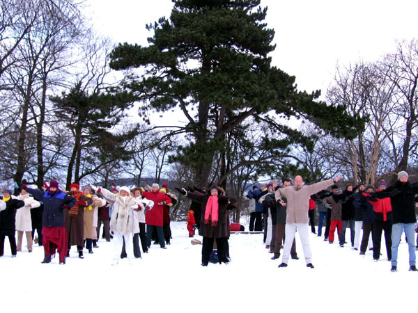 ![]() 集体炼功 | ![]() 向师父问候新年好! |