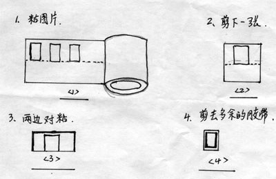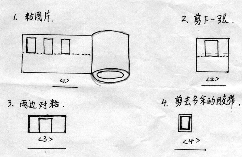 3、 一次可排着粘上四、五张,然后剪下一张或两张。