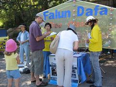 二零零六年十月八日,部份澳洲布里斯本法轮功学员来到了当地举办的募捐活动地进行洪法讲真相。