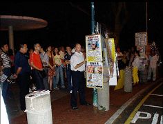 为了让更多的印尼民众了解法轮功真相,并共同制止中共对信仰“真善忍”的修炼者的这场迫害,二零零六年十月一日下午二时,印尼巴淡岛、丹绒梹让和来自马来西亚、新加坡的法轮功学员,在车水马龙的巴淡岛街上的大型商场道旁举办了讲真相活动。