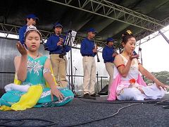 ![]() 天国乐团的表演和舞蹈队学员的功法演示令很多在场观众目睹了法轮功学员多才多艺的风貌 |