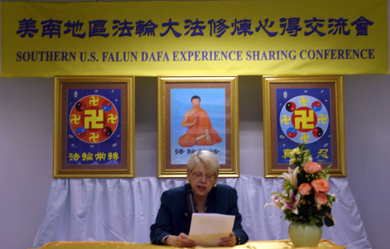交流会上有十六位同修发言。休斯顿学员曾女士发言说:师父来美传法十周年,我修炼也有十年了,当时知道大法好,一路坎坷走来,修炼的决心越来越大。在修炼过程中,我知道学法太重要了,但是干扰也很大。我看到明慧网有介绍同修背法体会的文章之后,我开始背法,第一遍很困难,现在已经背完一遍了,又开始背第二遍,就没有那么困难了,我有时间就学法。从二零零四年开始,我开始去中领馆讲真相,那个时候,有工作上的干扰还有家庭的干扰,但我坚持学法,从魔难中走了出来,稳健的走好以后的路。