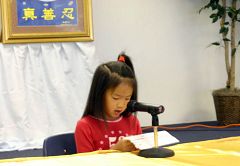休斯顿明慧学校开办已有三年,每个周末,小弟子们在一起学法,读《洪吟》,现在,周一至周五由父母亲与孩子一起读一段《转法轮》。法会期间,小弟子背诵了《洪吟》,大家以掌声鼓励。