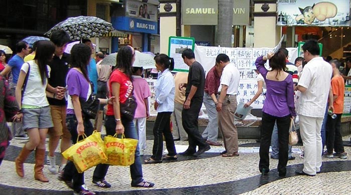 学员陈小姐告诉笔者:今天过往的游客特别多,《九评》一摆出,就有很多游客来拿。这说明中国大陆已有很多人知道《九评》这本书,都想了解具体内容,最起码这些人有被救的希望,她觉的很开心。