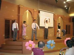 二零零六年十月七日是阿兰姐家娶儿媳的良辰吉日,阿兰姐想:娶媳妇会有很多久未谋面的亲朋好友前来走动,是洪法的好机会,就找同修一起交流规划“五套功法展示”、“仙女舞”、“腰鼓队”等洪法节目穿插在喜宴的仪式中。