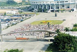 历史图片:广东省电白县九九年四二五前集体炼功一角