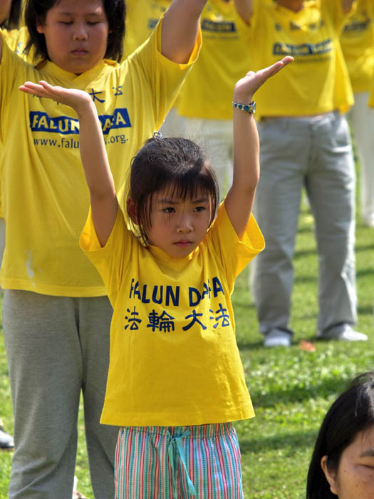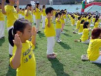 一位刚学炼法轮功三个月的魏先生表示,他很后悔现在才学炼。他说,其实太太已学炼了四年了,可这四年,也不知为何看到太太学炼法轮功,他总是会发火:她,学这个要干嘛!今年六月中旬的某一天,他突然想要学学看法轮功,炼了二个礼拜后,就不用吃治高血压的药了,也不想玩股票了。学炼过程中感触很多,每次读师父的讲法时,都很感动,现身体也在净化当中。今天是他第一次出来与这么多学员一起参加功法表演,非常的兴奋与感动。