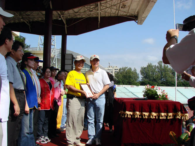 ![]() 运动大会颁发感谢状予参加的团体──法轮大法学会接受颁奖 |