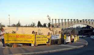 ![]() 学员们在以色列最高法院对面打出标语 |