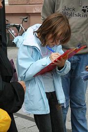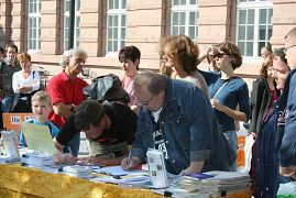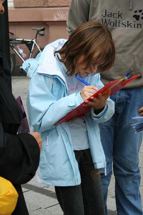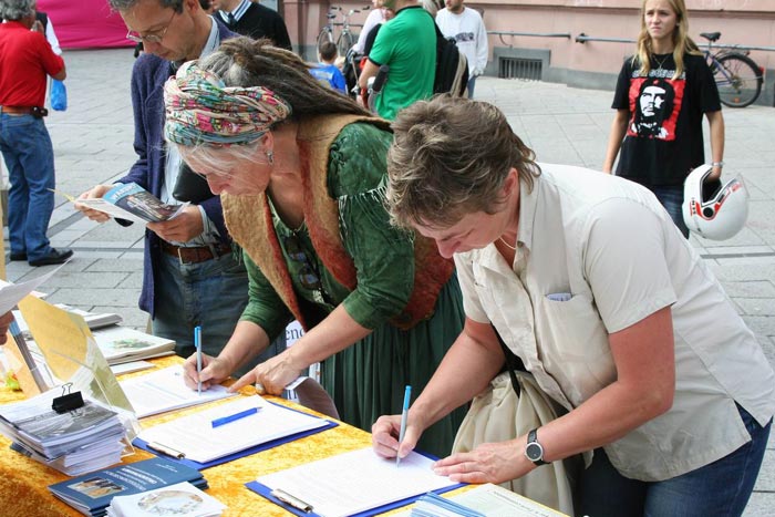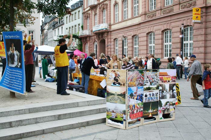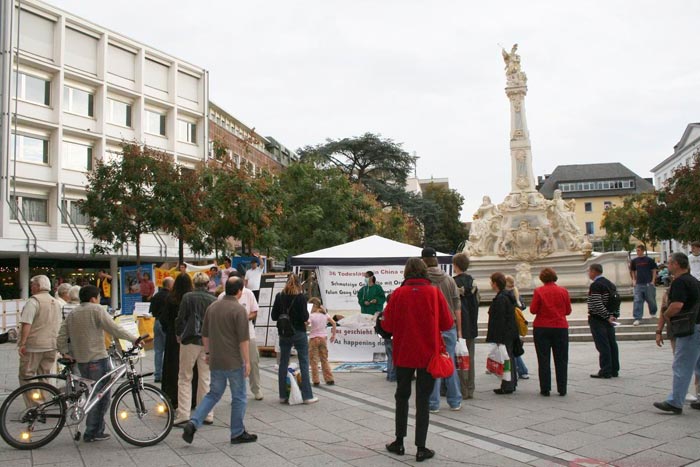 这个德国小镇,因《共产党宣言》的创始人卡尔•马克思一百五十多年前在此出生而“闻名”。从共产党这个邪灵诞生后,它所到之处,充斥着谎言、饥荒、贫穷、暴乱、恐怖、战争、暴力、酷刑,如今其在中国更变的穷凶极恶,甚至犯下活摘法轮功学员人体器官的罪行。虽然许多人知道共产党给人类带来重重灾难,可当活摘器官的模拟演示展现在人们的眼前时,他们还是极为震惊。那一时刻,让每个见证者都难以忘记,人们不得不去认真思考,在中共暴力铁蹄下的中国,正在发生着什么。人们纷纷来到展台前表达他们反迫害的心声。
