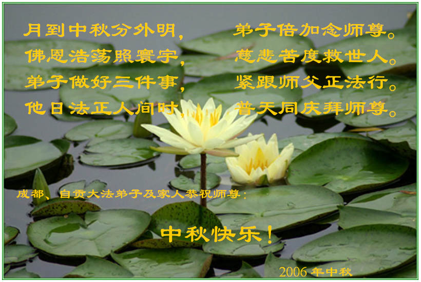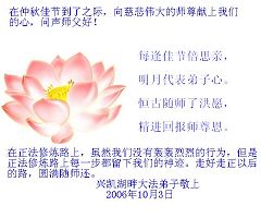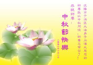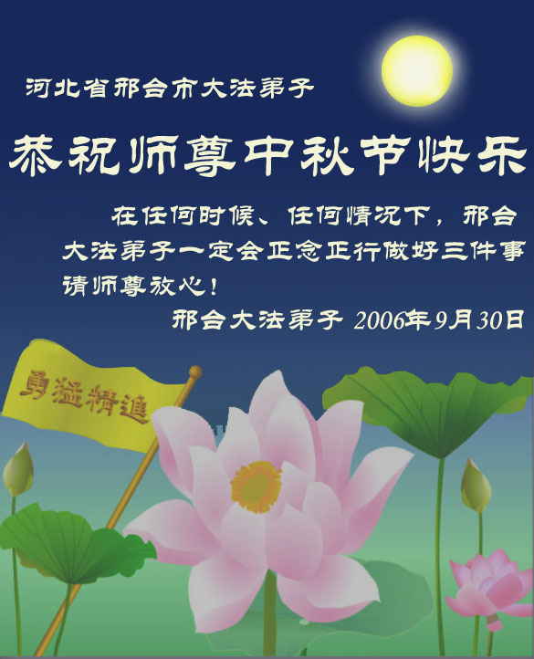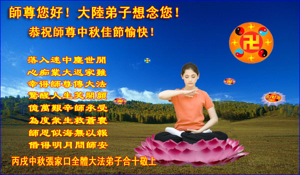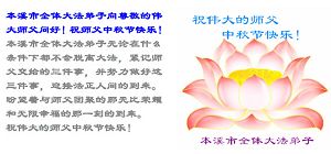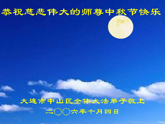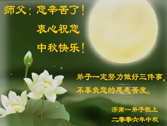 值此中秋佳节之际,我们山东菏泽全体大法弟子向您表示最亲切的问候,并致以最崇高的敬意!祝愿师尊节日快乐!