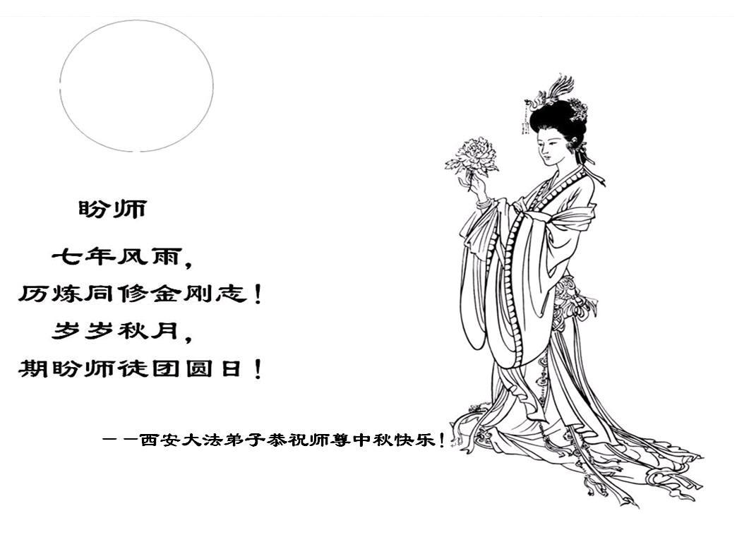 尊敬的师尊您好!在这中秋佳节到来之际,曲阜法轮大法全体弟子非常想念您,弟子们盼望与师尊相聚的美好时刻。我们一定要时刻牢记您的教导,正念正行,克服松懈思想,抓紧做好三件事,不辜负您的慈悲苦度。