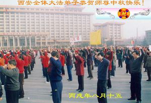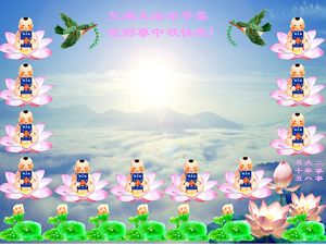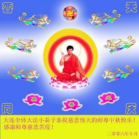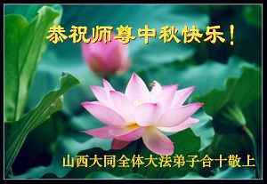 师尊您好:中秋节到了,山西大同全体大法弟子向您问候、您辛苦了!您为众生付出了一切,在此中秋佳节之际,我们全体大法弟子更要勇猛精進,不辜负师父的慈悲苦度,做好大法弟子应该做好的三件事。