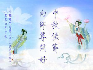 顺祝明慧编辑部的同修及所有海外的同修中秋节快乐!“天涯共此时”,愿我们所有的心能熔为同一颗心,共同精進,共同做好,形成一个坚不可摧的整体,兑现我们的史前大愿!精進、精進、再精進!