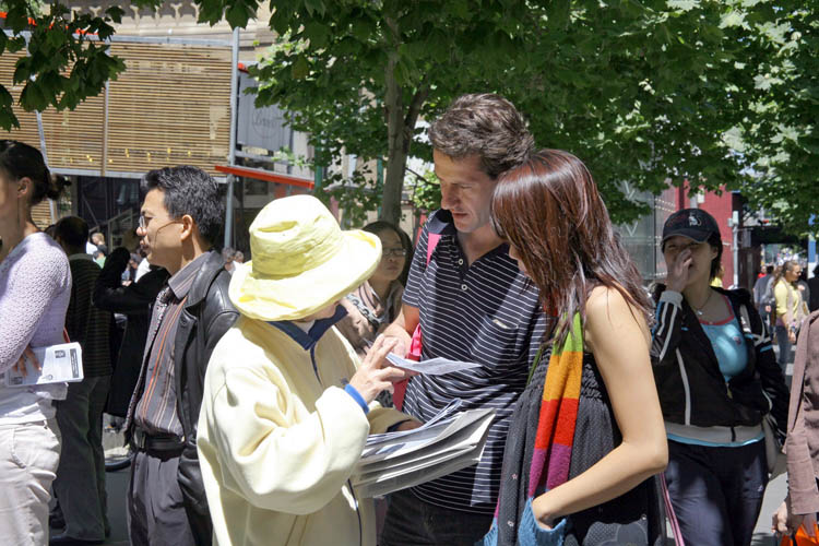 行人们在了解真相后,欣然在呼吁制止迫害的请愿书上签名。