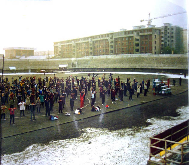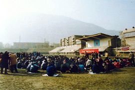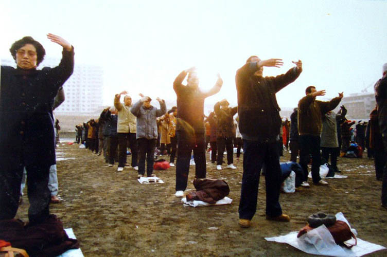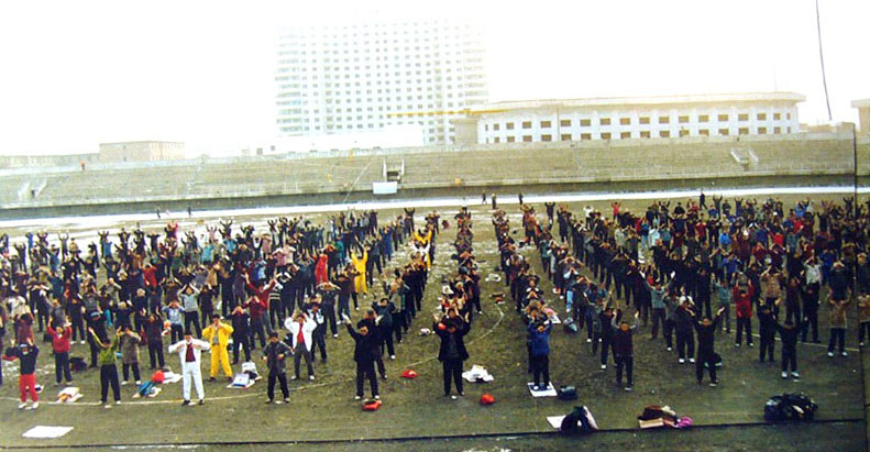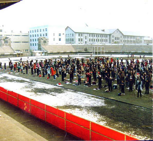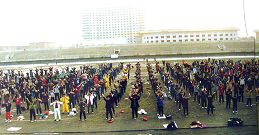 ![]() 早晨,学员们在户外炼功 |