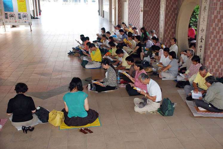 主办者为年纪较大、不懂国语的学员安排了台语班,大家专注的用台语一个字一个字的念着经文。学员里有许多是夫妻一起来学法的,主持人鼓励大家多向家人洪法,把修炼法轮功后身心受益的情况告诉亲朋好友。