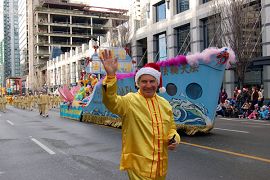 温哥华是北美华人聚居的第二大城市,因为受中共恶党谎言宣传的毒害,过去一些华人在法轮功游行队伍经过的时候,常常表现出不屑一顾。而这次观众队伍中有许多华人,看到法轮功队伍后,他们脸上都洋溢着一种兴奋、自豪的神态。