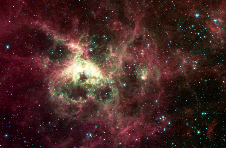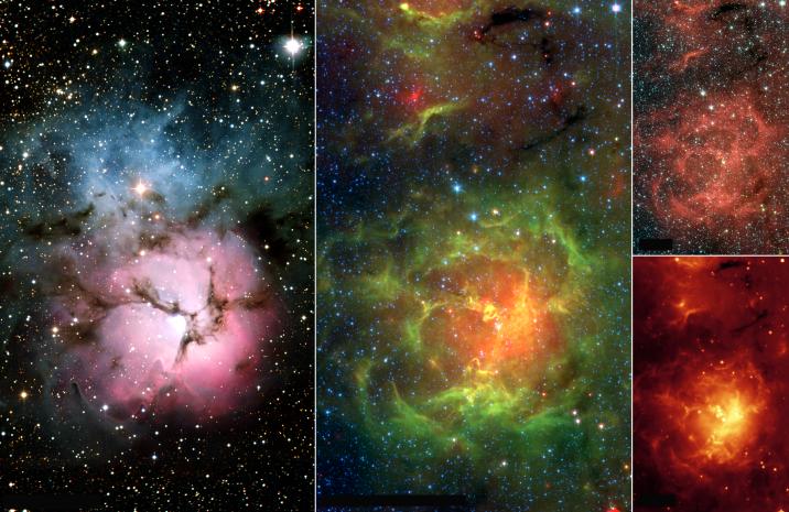 ![]() 图左是可见光成象,图右是美国宇航局Spitzer太空望远镜的红外光成象 |