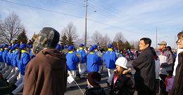 天国乐团协调人江先生说:“今天下午在巴里市及布兰福特市的游行效果也很好。队员发挥的非常好,超过了我原先的估计。观众基本上站满了沿途所有街道。在布兰福特市的游行中,Rogers电视台实况转播了整个游行情况,摄像机还专门拍摄了我们的‘法轮大法’横幅。”