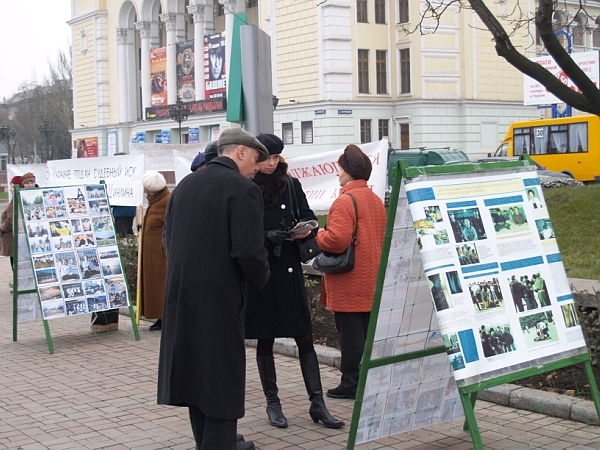 【明慧网二零零六年十一月二十九日】二零零六年十一月二十六日,乌克兰法轮功学员在多涅茨克(Donetsk)市举行活动,抗议中共对法轮功学员的人权迫害,同时,向乌克兰人民讲述在中国发生的对法轮功学员惨无人道的迫害,希望全世界善良的世人都能够觉醒,共同反对这场浩劫,使中国的人权状况尽快得以改善。