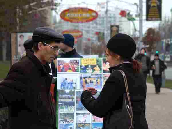 一名老人听学员说到在中国有这样一群信仰“真、善、忍”的好人正在遭受着迫害时,他立刻说:“这一点儿都不奇怪,因为在那里还是共产主义制度。我是一名艺术家,是乌克兰艺术协会中的成员。我本人也曾受过共产党迫害。我绝对支持你们所做的(反迫害的)事!” 他长时间的同学员交流,仔细阅读展板上的真相内容,然后主动的签名反对在中国的迫害。