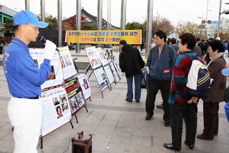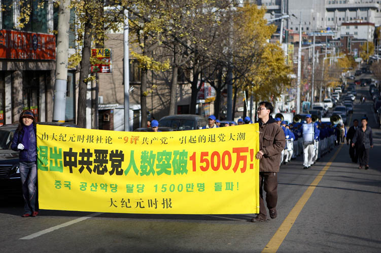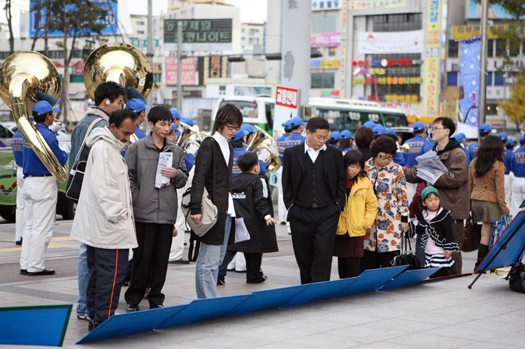 【明慧网二零零六年十一月二十九日】二零零六年十一月二十六日,由韩国法轮大法学会首都地区辅导总站主办的声援退出中国共产党人数超过一千五百万大游行在韩国水源市举行。水源市是一座位于韩国首尔南部,拥有一百万人口的城市,有许多中国人居住在这里。