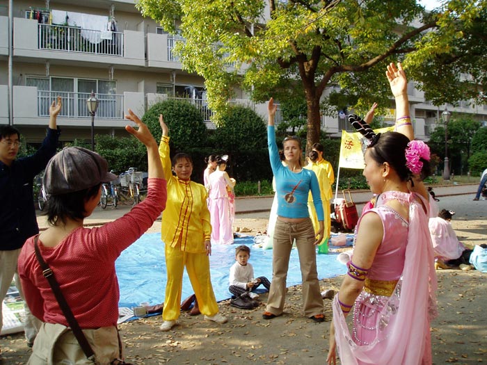 舞台表演结束后,有许多观众要求学功,特别是有许多中国人来听法轮功真相和索要真相资料。在东京尚未入冬之前,几乎每个周六周日在各个社区都举行各种各样的文化活动,唐韵艺术团都积极参加此类活动,从文化艺术的角度展现法轮大法的美好。