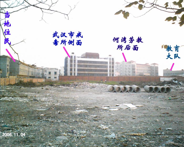 ![]() 武汉市女子戒毒中心的正面,恶党为了达到转化和迫使大法弟子放弃修炼和信仰“真善忍”的邪恶目地,有时就把女大法弟子分开关押,部份学员就被非法关押到此。它们集中非法关押女大法弟子的地方是前图所示的何湾女子劳教所内 |