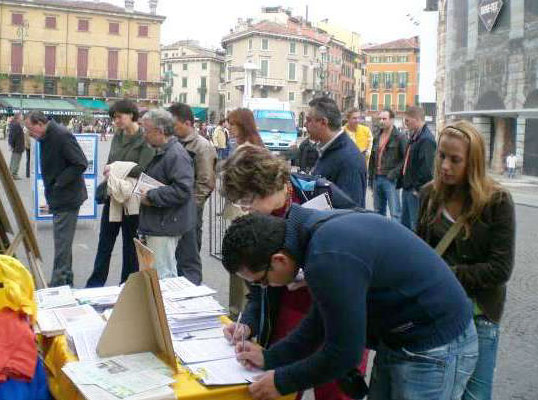 ![]() 中共对法轮功的迫害在维罗纳市引起人们的关注 |