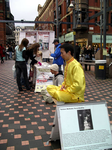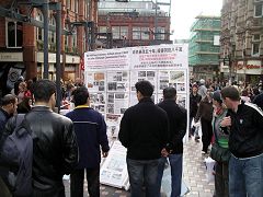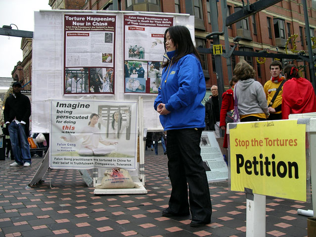 ![]() 人们震惊的看着揭露中共践踏人权暴行的展板 | ![]() 在呼吁制止中共迫害的请愿书上签名 |