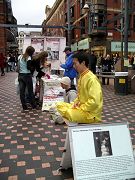 这个热闹的星期六充满了逛街的人流,有些路人被现场的功法演示所吸引,纷纷询问在何处可以学炼法轮功。在活动接近尾声时,学员们准备的真相资料几乎全部发完,所剩下的就是满载签名、要求终止迫害的请愿信。