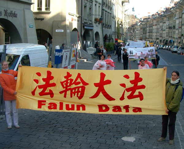 ![]() “法轮大法好”行進在瑞士首都伯尔尼市中心的主要街道 |
