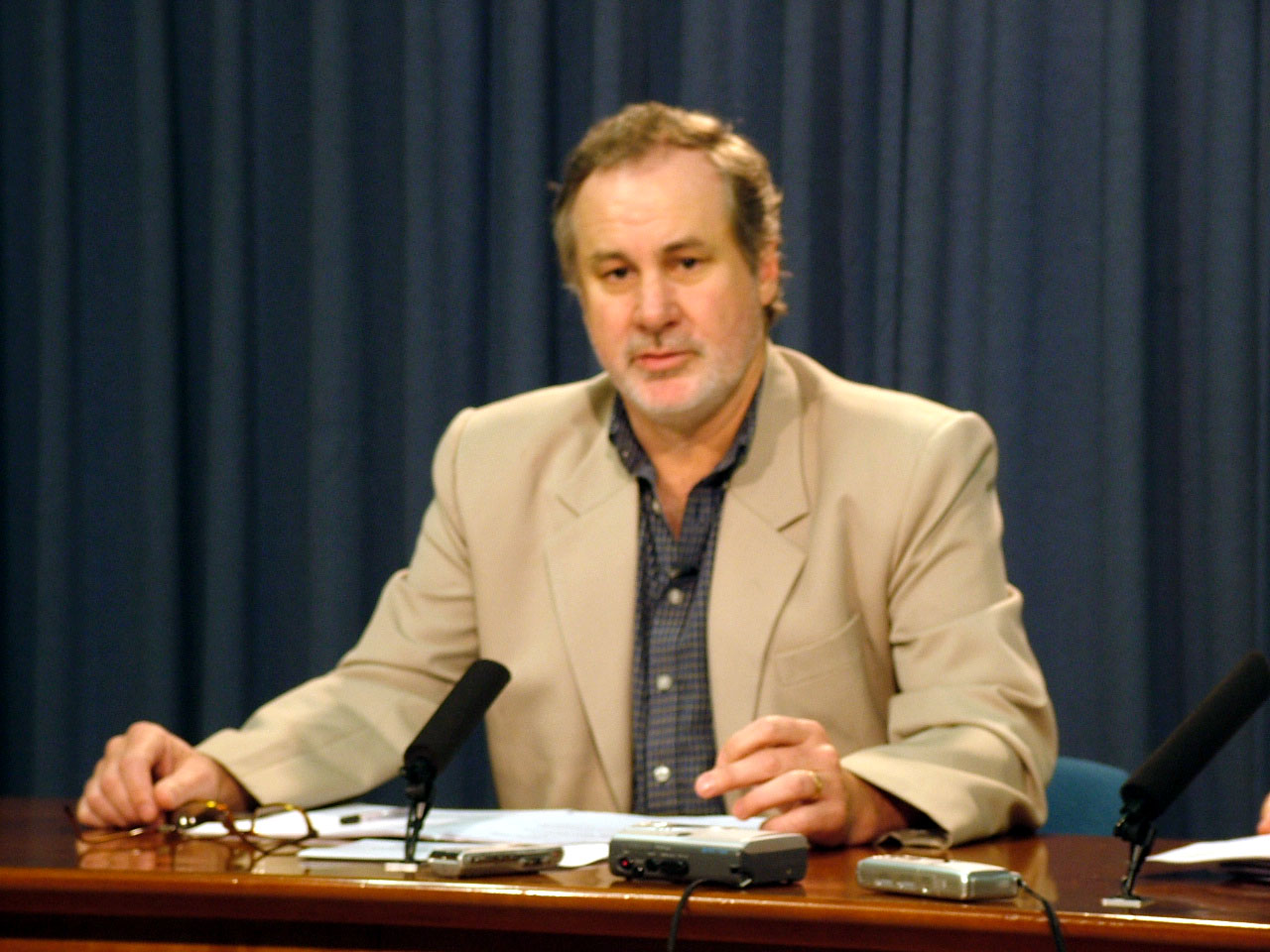 ![]() 纽省议员,民主党发言人阿瑟·伊万博士主持了新闻发布会 |