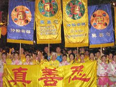 二零零六年八月,应泰国有关方面邀请,法轮功学员在泰国王后庆典上颇具佛法神韵的别具一格的表演,震动了泰国主办方和全场观众,演出大获成功。