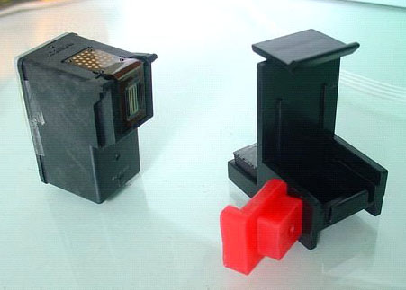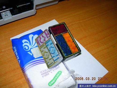 打孔位置:黑色墨盒可任选一个位置,彩色墨盒可以参考其结构选择合适位置打孔: